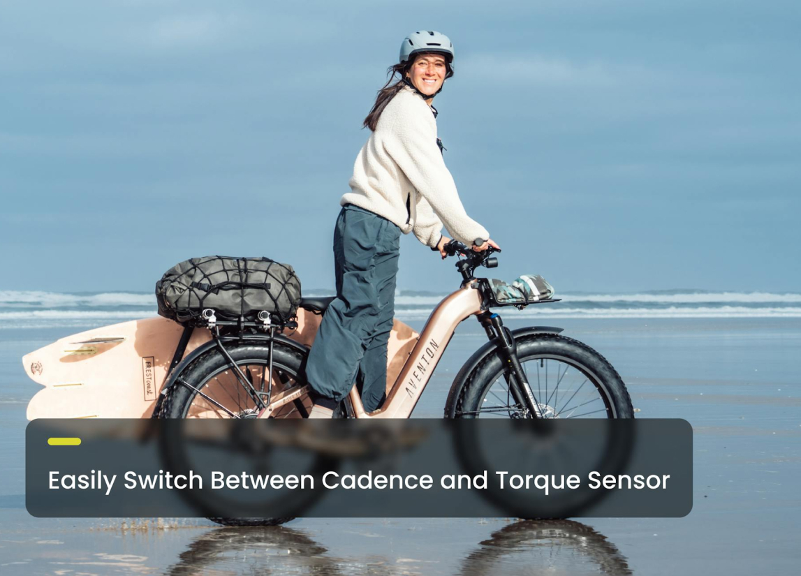 Like two bikes in one, choose between using a Torque or Cadence sensor with Sensor Switch. Whether you want to feel the power on the pedals or just cruise, Aventon’s Sensor Switch gives you the option to optimize your ride.